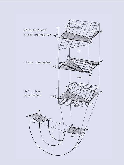 DIN2093標準詳細規(guī)定了盤片厚度由t減到t’的情況。A、B系列彈簧t’與t之間的平均厚度減薄比為0.938,C系列彈簧t’與t之間的平均厚度比為0.995。由于支撐面的存在,已不必對橫截面邊緣I…IV角點的載荷應力進行計算。因此計算應力或多或少高于用更為精確的方法計算的角部實際應力。由于這些數值只是一些名義值,因此偏差并不重要。