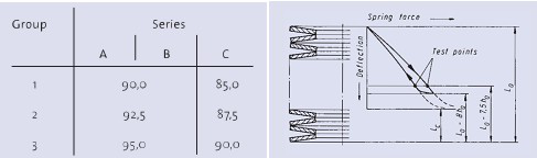 載荷測試時,彈簧組須至少壓縮至Lo=0.8?ho。 lo=0.75?ho時的卸載載荷須在表所規(guī)定的范圍內(nèi)。